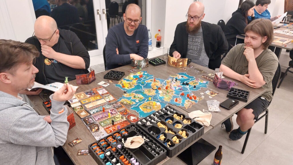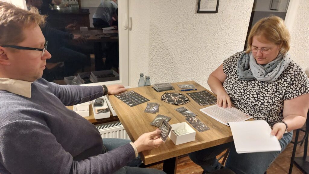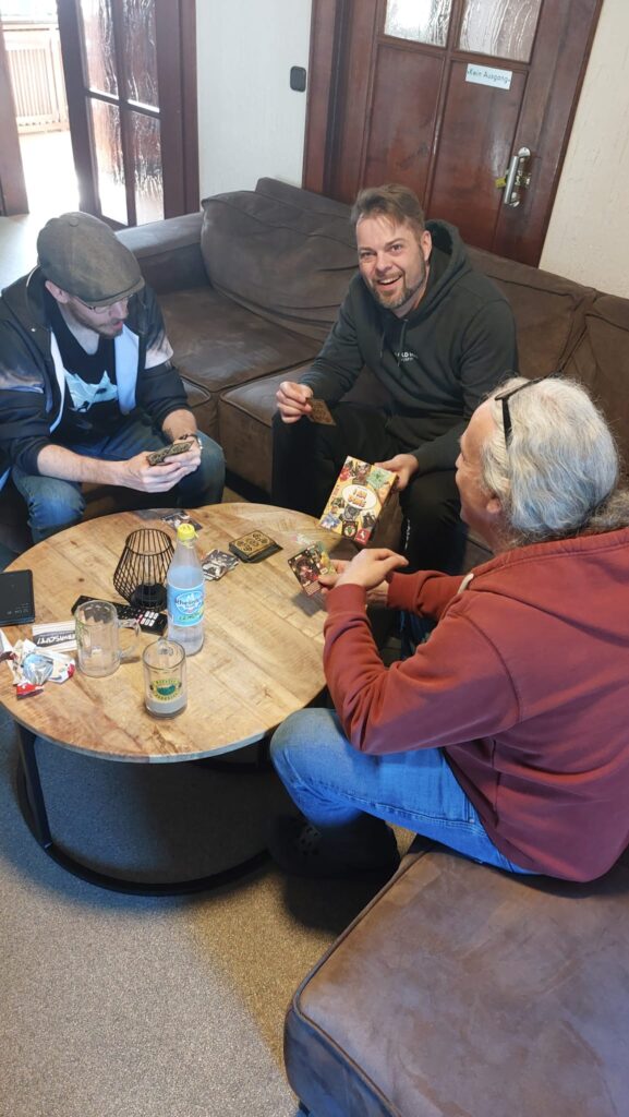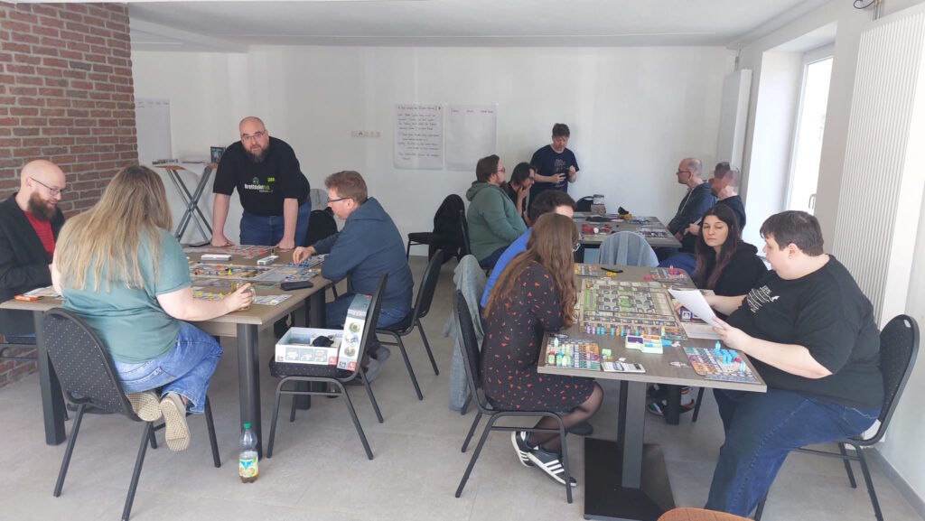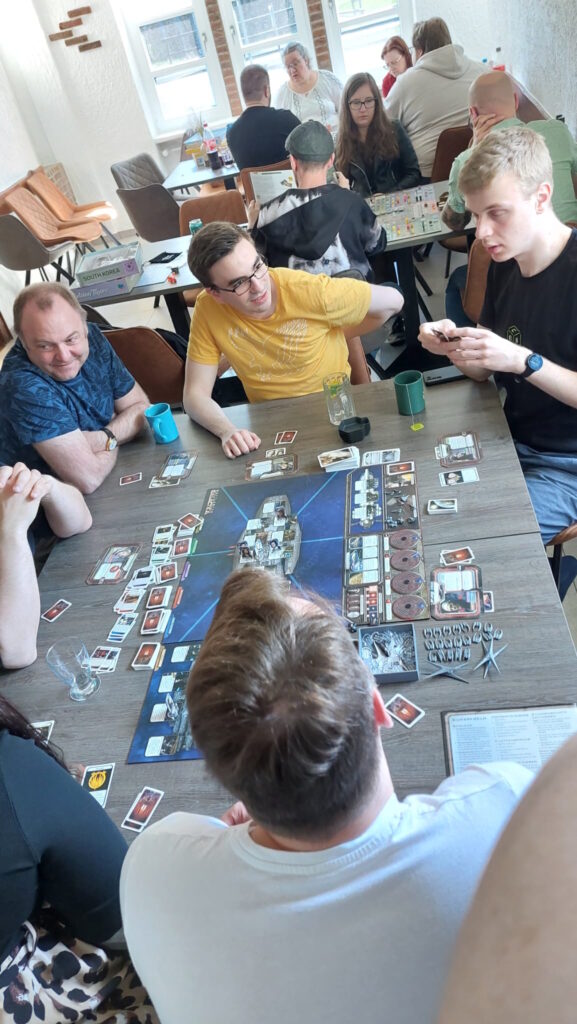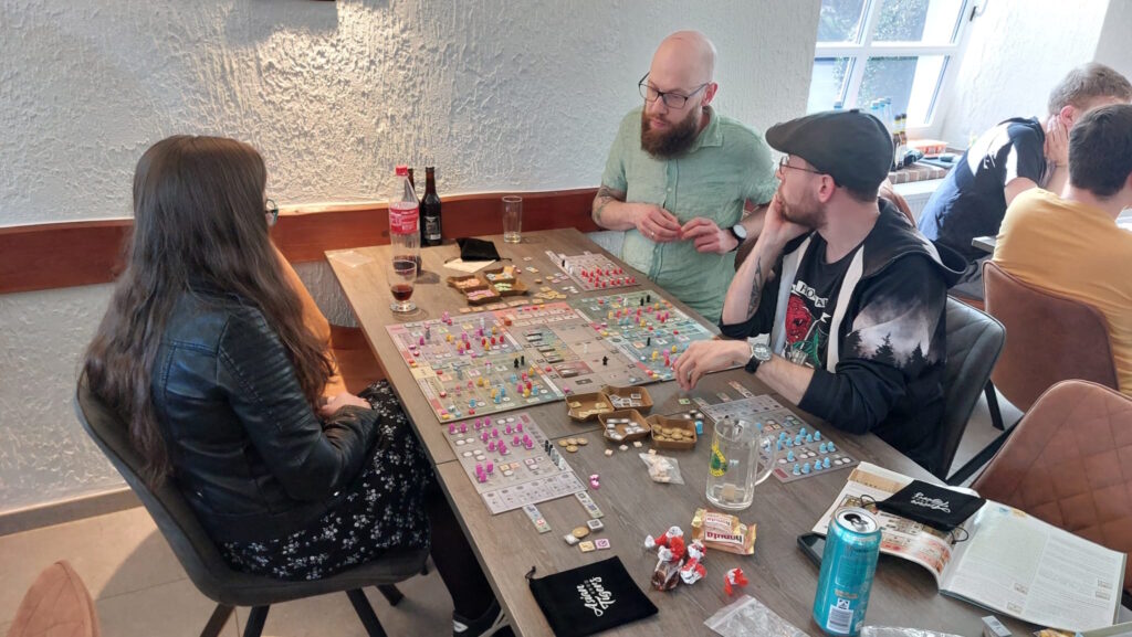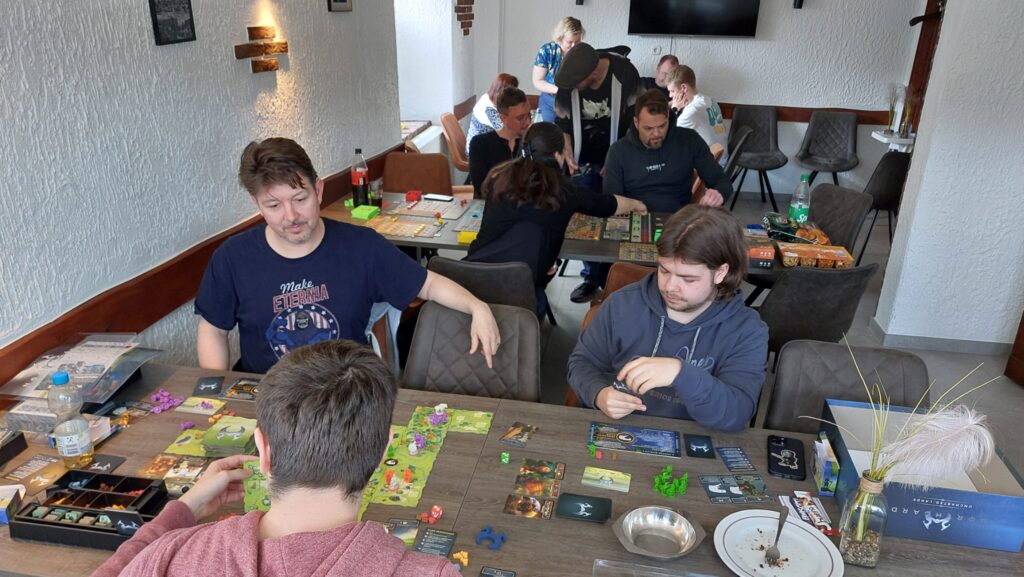 Von schnellen Kartenduellen bis zu epischen Brettspielmarathons – alles war dabei – viele nächtliche Runden „Blood on the Clocktower“ und ein interessanter Prototypen-Test mit „Dark Romance“ von Funtails. Egal ob Klassiker, Kennerspiel oder verrückte Neuerscheinung: Jeder kam auf seine Kosten. Besonders schön war zu sehen, wie sich Gruppen immer wieder neu zusammenfanden – mal gemütlich, mal strategisch, immer mit viel Spaß und guter Stimmung.