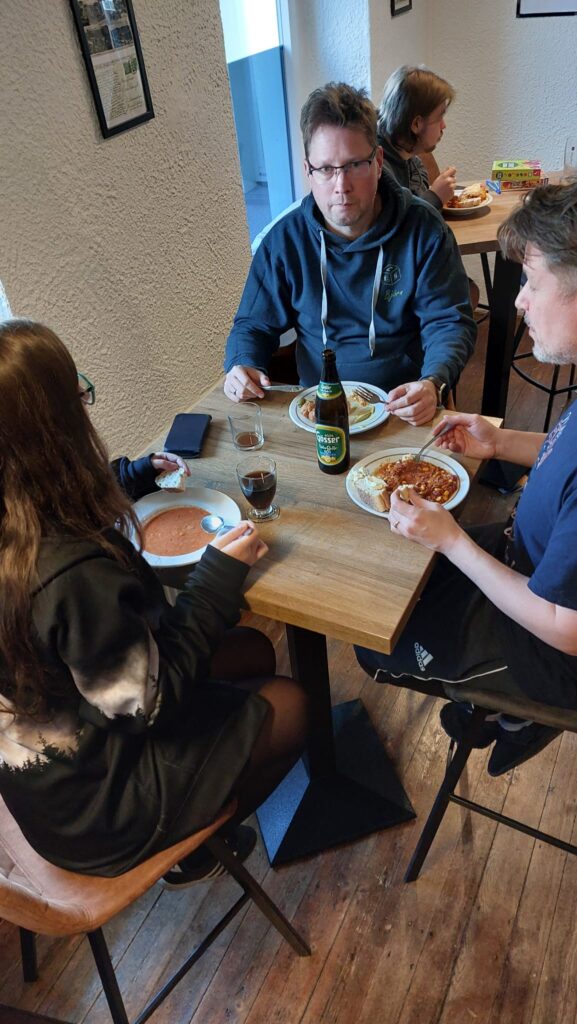 Schon beim Eintreffen am Freitagabend war klar: Das wird ein besonderes Wochenende. Kaum waren die Spiele ausgepackt und die ersten Tische aufgestellt, füllte sich der Raum mit fröhlichem Stimmengewirr und Gelächter. Unser gemeinsames Mitbringbuffet war wieder ein Traum! Von hausgemachten Salaten über deftige Eintöpfe bis zu süßen Nachtischkreationen war alles dabei. Jeder brachte etwas mit – und am Ende stand ein Buffet, das kaum zu übertreffen war.