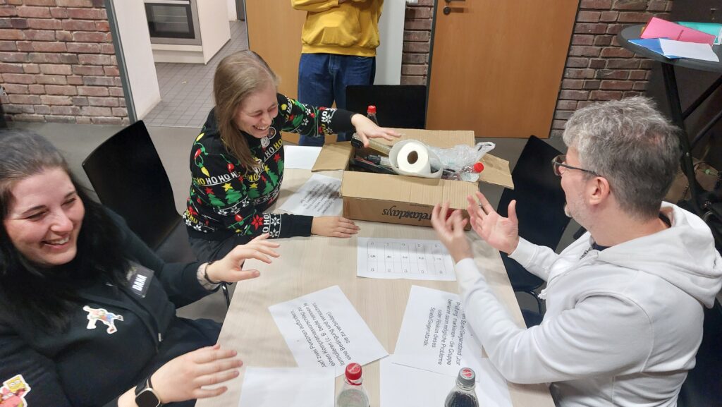 Johanna und Christof meinen…Das Problemlösungsspiel war im Escape-Room-Stil erarbeitet. Man konnte auf spielerische Art und Weise seine Problemlösungskompetenzen erproben und neues dazulernen. Auch konnten alle Teammitglieder sehr gut ihre individuellen Eigenschaften einbringen, um gemeinsam ans Ziel zu kommen.