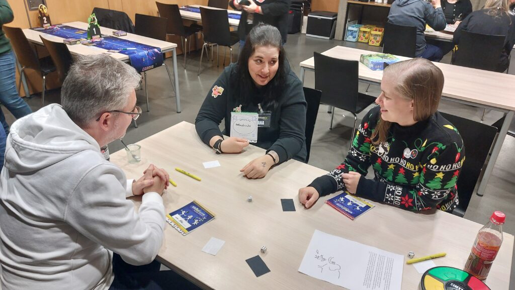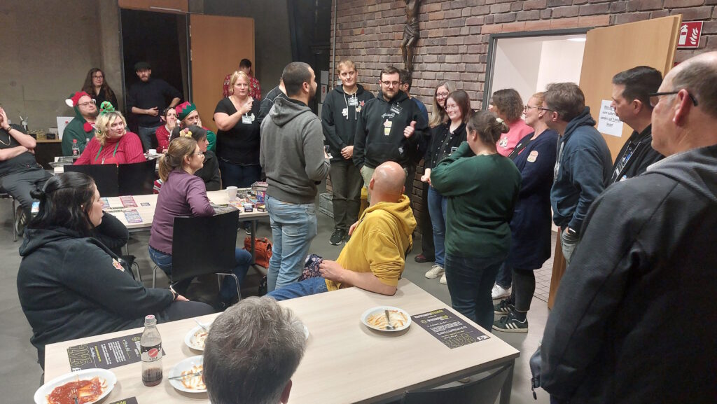 Das absolute Highlight des Tages war das von unserem Pen-&-Paper-Team inszenierte Live-Action-Rollenspiel. Die Story: Am Nordpol herrscht Chaos! Der fiese Krampus hat den Weihnachtsmann und alle Geschenke entführt. Nun lag es an unseren Heldengruppen, das Weihnachtsfest zu retten. In Teams von vier Personen meisterten die Teilnehmenden knifflige Aufgaben, lösten Rätsel und kämpften sich durch eine liebevoll gestaltete Geschichte voller Spannung und Humor.