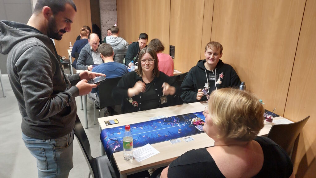 Fabio, der Turnierleiter meint…die Stimmung beim Turnier war einfach elektrisierend – jeder Zug hat gezählt! Jede Partei war anders und selbst das reine zuschauen war spannend. Es ist unglaublich wie schnell man das Spiel lernt und dann die tiefe des Spiels erkennt.
