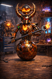 Knak Q war nie für Größe oder Heldentum gebaut. Er war ein Werkzeug unter Werkzeugen – ein Clank der Werkshallen, geschaffen für Wiederholung, Präzision und Ausdauer. In der Fabrik war sein Dasein klar definiert: rollen, greifen, drehen, justieren, rechnen, ordnen. Drehmomente mussten stimmen. Zahnräder durften nicht versagen. Magie war etwas für andere.