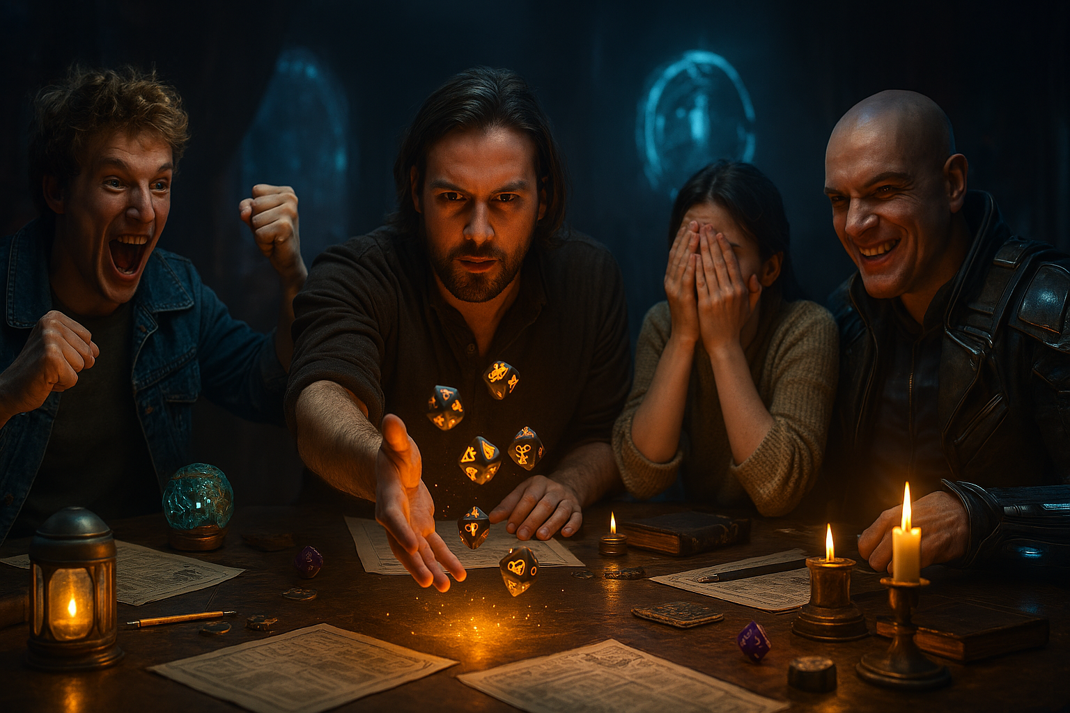 Weil es Räume öffnet, die sonst kaum ein Spiel bietet. Hier geht es nicht um Gewinnen oder Verlieren, sondern um Erleben. Um Entscheidungen, die Bedeutung haben. Um Momente, in denen man lacht, zweifelt, scheitert oder über sich hinauswächst – gemeinsam mit Anderen. Pen & Paper schenkt Freiheit: Jede Idee kann funktionieren, jeder Einfall die Geschichte verändern. Gleichzeitig entsteht eine besondere Nähe am Tisch. Man hört zu, reagiert aufeinander, baut zusammen Welten und Erinnerungen. Es ist ein Spiel, das verbindet – durch Fantasie, Vertrauen und das Gefühl, Teil von etwas Eigenem zu sein. Ein typischer Moment am Spieltisch beginnt oft ganz ruhig. Die Spielleitung beschreibt eine Szene: einen dunklen Wald, eine belebte Taverne oder eine verlassene Raumstation. Dann wird es still – und jemand fragt: „Was seht ihr?“ Von diesem Punkt an entfaltet sich die Geschichte durch Gespräche, Entscheidungen und Reaktionen. Spieler:innen überlegen, diskutieren, handeln. Ein mutiger Plan, ein riskanter Würfelwurf, ein unerwarteter Ausgang. Die Welt antwortet auf das, was am Tisch passiert. Spannung entsteht nicht durch Grafik oder Soundeffekte, sondern durch Vorstellungskraft und gemeinsames Eintauchen. Jeder Moment ist unvorhersehbar, jeder Abend erzählt eine Geschichte, die es so kein zweites Mal gibt.